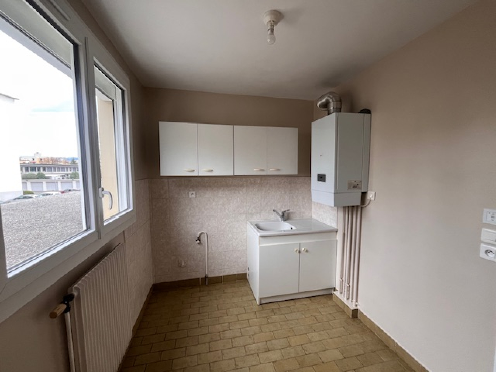 Chauffage individuel gaz, double vitrage PVC, volets roulant électrique.