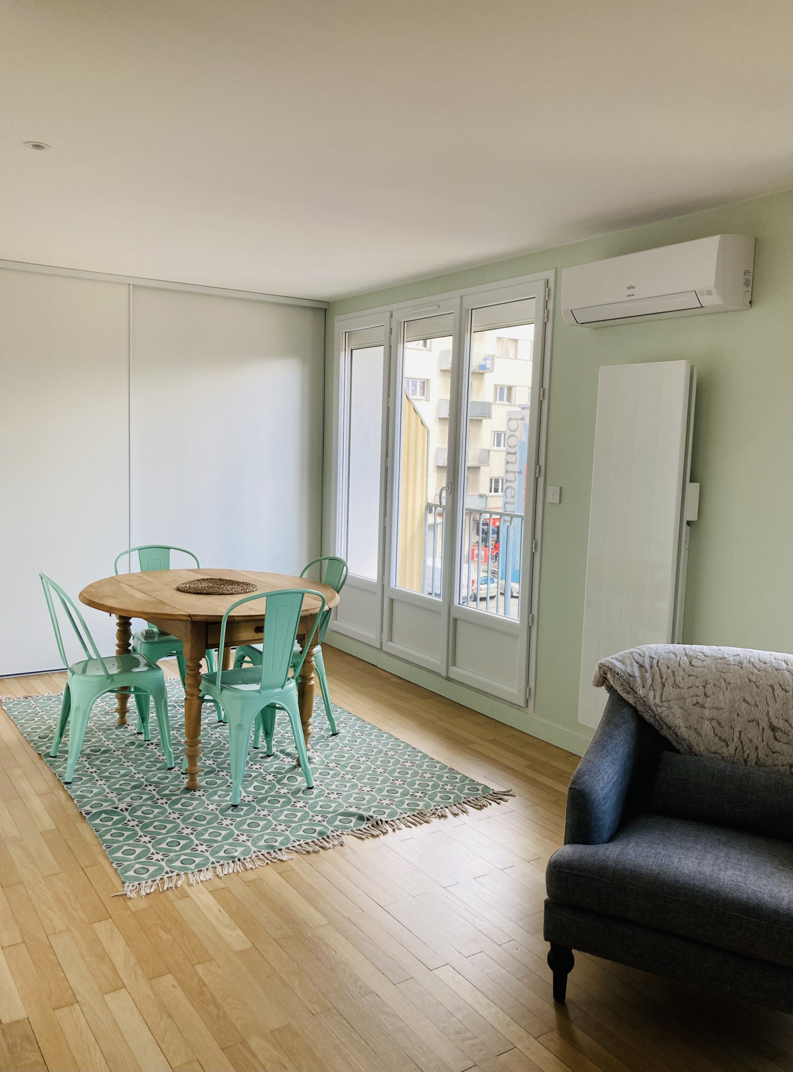 Toutes les menuiseries sont en double vitrage et le salon et la cuisine bénéficient de baies vitrées coulissantes. L'électricité complète a été rénovée et tous les radiateurs changés.